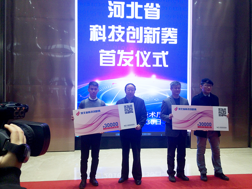 2016年12月30日,河北省科技創(chuàng)新券首發(fā)儀式暨創(chuàng)新服務(wù)提供機(jī)構(gòu)授牌儀式在石家莊舉行。省科技廳黨組副書記、副廳長(zhǎng)郭玉明出席活動(dòng)并講話,并對(duì)科技創(chuàng)新券的使用提出了具體要求。來自省內(nèi)的30家創(chuàng)新創(chuàng)業(yè)團(tuán)隊(duì)代表參會(huì),石家莊高新區(qū)科技局代表審核發(fā)放機(jī)構(gòu)介紹個(gè)創(chuàng)新券使用說明及首批申領(lǐng)情況。郭玉明副廳長(zhǎng)為10家創(chuàng)新服務(wù)提供機(jī)構(gòu)授牌,并為10家創(chuàng)新券申領(lǐng)單位代表發(fā)券。